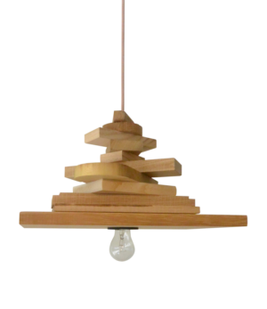 The inspiration and idea of the specific lamp is a childhood memory of an outdoor game, called ‘Jami’. The game is played by gathering and applying stones, tiles or pieces of wood one on the other, to create a ‘Jami’ (mosque). The lamp is created in the same sense, applying wooden pieces one on the other. It can be customized in several versions with a unique result. A simple and standard form with upcycling perspective.