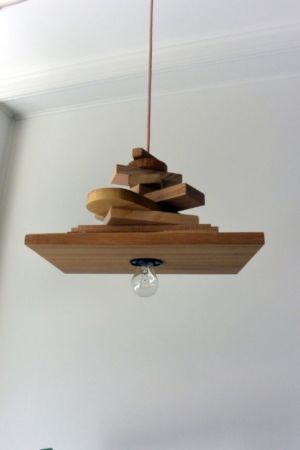 Mε τον ίδιο τρόπο είναι κατασκευασμένο και το φωτιστικό, τοποθετώντας ξύλα το ένα πάνω στο αλλο.